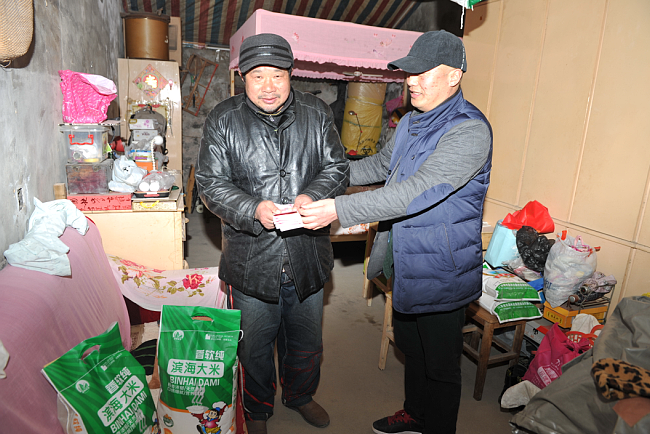 原來,陸同林是農場轉崗職工,通過自謀職業(yè),從事個體經營業(yè)務。有著濃厚軍墾情結的他,在兩天前特地找到臧成龍,想通過他了解,并在年前資助兩戶貧困戶的想法。