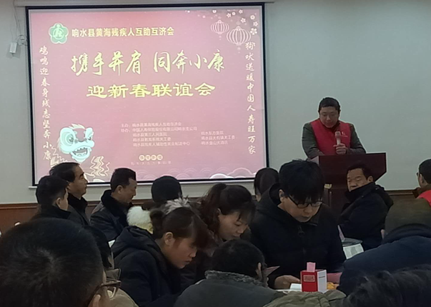 2月7日,“攜手并肩 同奔小康---迎新春聯(lián)誼會”,在響水縣金山大酒店隆重舉行,響水縣黃海殘疾人互助互濟會會長何顏軍致歡迎詞,縣殘聯(lián)張副理事長發(fā)表講話,關(guān)工委潘副秘書長、民政局薛科長等部門領(lǐng)導參加會議,中國人壽保險公司響水縣支公司、響水第三人民醫(yī)院、東方醫(yī)院等贊助單位代表到場祝賀,縣電視臺從頭到尾跟蹤采訪報道。