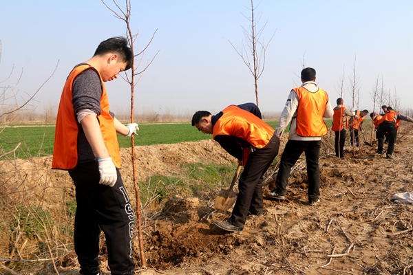 現(xiàn)場(chǎng),場(chǎng)領(lǐng)導(dǎo)陳守軍、潘元海、戴學(xué)林、仰海洲、王煜明帶頭,志愿者熱情被點(diǎn)燃,紛紛加入“植樹大軍”,一字排開(kāi),倆倆一組分工明確,扶樹、填土、培土……一氣呵成。志愿者們以每2分鐘一棵樹的高效率,打破了歷年植樹速度之最。