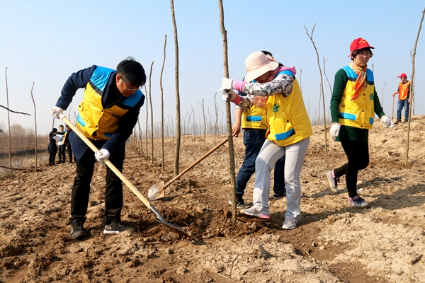 3月的新洋,春光旖旎,生機(jī)煥發(fā)。12日下午,150名志愿者分別集結(jié)新北生產(chǎn)區(qū)6大隊(duì)和7大隊(duì)防風(fēng)林帶,僅40分鐘就植下重陽(yáng)木和水杉共3000棵,為“綠色生態(tài)新洋”描繪出濃墨重彩的一筆。