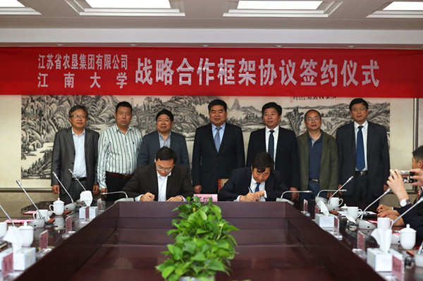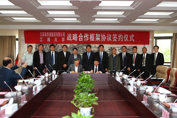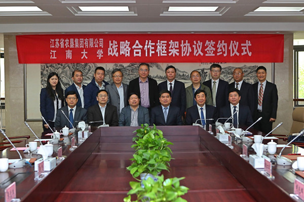 5月7日上午,江蘇省農(nóng)墾集團有限公司與江南大學(xué)戰(zhàn)略合作簽約儀式在無錫舉行。江南大學(xué)校長陳堅、副校長吳正國,集團公司黨委書記、董事長魏紅軍,總經(jīng)理胡兆輝,黨委委員蘇志富等出席簽約儀式。魏紅軍、陳堅分別代表雙方在簽約儀式上致辭。簽約前,江南大學(xué)黨委書記朱拓會見了魏紅軍一行。
