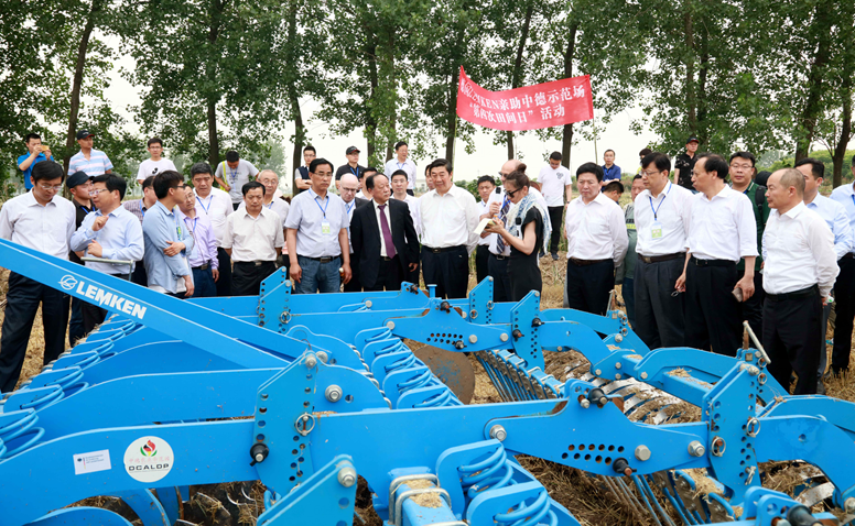 蘇志富在致辭中向中德雙方政府領(lǐng)導、農(nóng)業(yè)專家、項目合作企業(yè)及社會各界人士表示最衷心地感謝!要求項目二期繼續(xù)秉承“合作創(chuàng)新、成就未來”的發(fā)展理念,緊緊圍繞“綠色、有機、生態(tài)”農(nóng)業(yè)的可持續(xù)發(fā)展目標,建立起中德作物生產(chǎn)與農(nóng)業(yè)技術(shù)合作創(chuàng)新平臺、中德農(nóng)機農(nóng)藝培訓中心平臺和中德合作機械化示范基地。