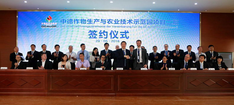 5月29日,中德作物生產(chǎn)與農(nóng)業(yè)技術(shù)示范園第四屆“田間日”活動暨項目二期簽約儀式在蘇墾農(nóng)發(fā)黃海分公司舉行。集團公司總經(jīng)理、蘇墾農(nóng)發(fā)股份公司董事長胡兆輝出席并代表蘇墾農(nóng)發(fā)股份公司與與德國GFA咨詢集團有限公司項目經(jīng)理安德列斯•伽木措先生及德國9家合作企業(yè)代表簽約。集團公司紀委書記章朝陽出席并觀摩田間活動。集團公司黨委委員、蘇墾農(nóng)發(fā)股份公司總裁蘇志富致辭。德國聯(lián)邦食品與農(nóng)業(yè)部國際合作與世界營養(yǎng)司副司長弗里德里希•瓦克行先生、中國農(nóng)業(yè)農(nóng)村部國際合作司歐洲處副處長劉江女士分別講話。中德示范園主任王亦勤主持并與示范園德方負責人托馬斯•伊利斯分別從中德雙方不同的角度做一期成果匯報與二期項目規(guī)劃展望黃海農(nóng)場有限公司董事長、總經(jīng)理單祥忠等出席會議。
