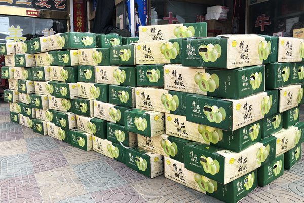 在?港農場快遞發貨點,瓜果蔬菜經濟人楊宏林每天都要打包100多箱的玉茹甜瓜發往全國各地,其中有不少回頭客,也有不少老客戶介紹來的新客戶。客戶從微信上下單,我到瓜農地里現摘現賣,保證甜瓜的口感和新鮮度。楊宏林說,從去年開始他就發現微信圈的甜瓜銷售也不錯,象他這樣每天通過微信發快遞銷售甜瓜量比較大的經濟人農場就十幾個。