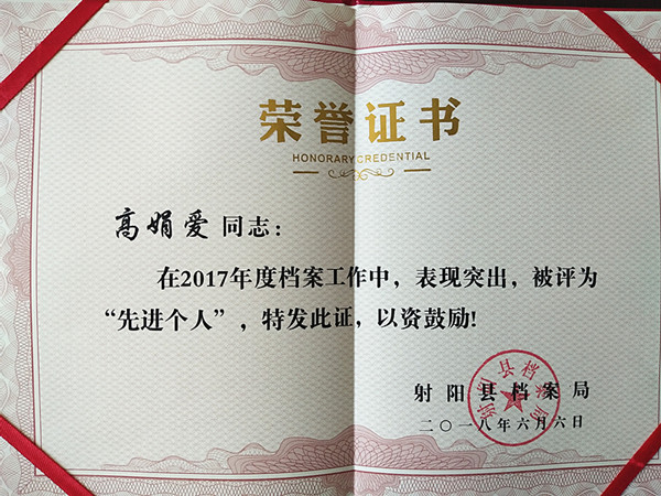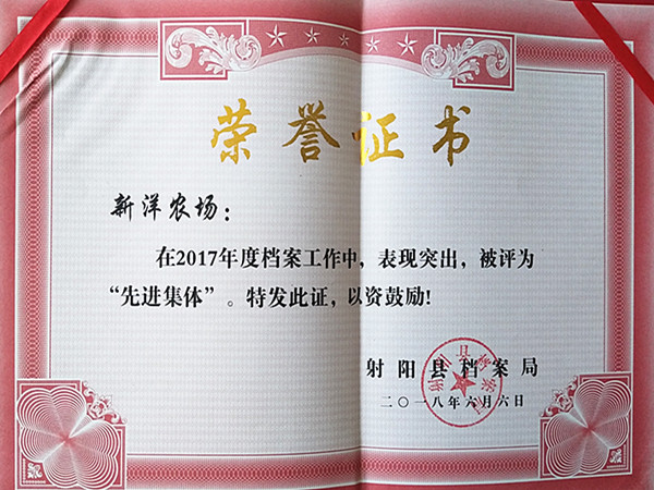 日前,射陽縣檔案局傳來喜訊,新洋農場有限公司榮獲射陽縣2017年度檔案管理工作“先進集體”稱號,檔案管理員高娟愛榮獲2017年度檔案工作“先進個人”。