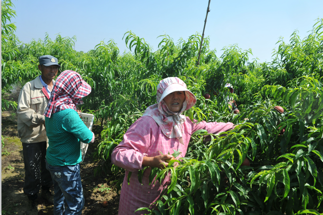 “我們這片果園有140畝,生長著桃子、梨子、石榴和冬棗等四個品種,這些果樹的管理工作需要大量的勞動力,每年僅勞務用工就是十六七萬元。我們有意識的動員周邊農村的富余勞力到這里來打工,在便利我們管理的同時,也為他們創收提供方便。”果園基地負責人周玉軍告訴筆者。