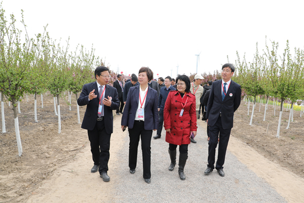 開幕式結(jié)束后,與會領(lǐng)導(dǎo)和嘉賓興致勃勃地參加了“親近海棠”游園活動。漫步在“十里海棠”——觀賞海棠科技產(chǎn)業(yè)園,競相綻放的五十多個品種的海棠花,千姿百態(tài),嬌艷欲滴,吸引大家駐足觀賞。