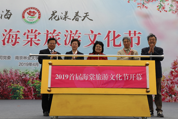 開幕式上,劉克英、吳岡玉、袁軍、王良桂、黃禮慶共同啟動開幕卷軸,拉開了2019首屆海棠旅游文化節(jié)的序幕。