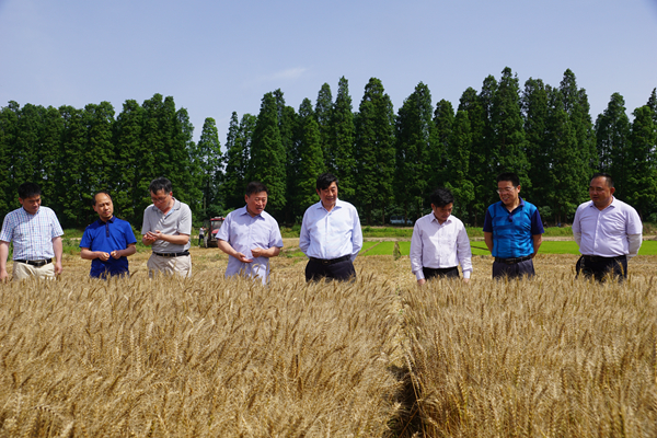 在"華麥5號(hào)"高產(chǎn)創(chuàng)建示范田,胡兆輝對(duì)該品種在新洋測(cè)產(chǎn)733.7公斤每畝再次刷新江蘇省小麥單產(chǎn)歷史最高紀(jì)錄給予了高度贊賞。他指出,今年小麥穩(wěn)產(chǎn)高產(chǎn)形勢(shì)好,后期要時(shí)刻關(guān)注突發(fā)性天氣變化,做好應(yīng)對(duì)防范保障措施,力保收割沖刺階段平穩(wěn)高效過渡,確保"三夏"各項(xiàng)工作有序開展。