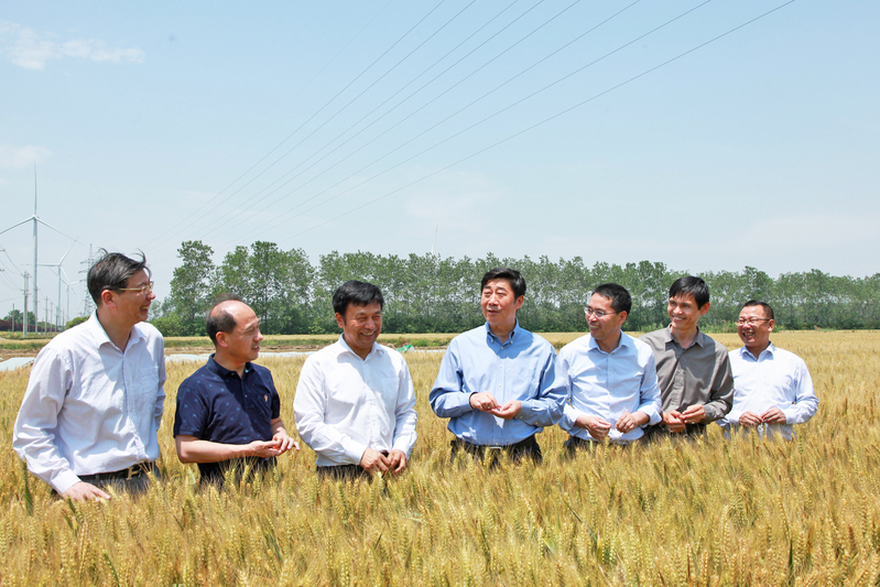 胡兆輝一行先后深入到櫟樹項目基地、中山杉苗木培育基地、小麥高產(chǎn)田塊、國有種植高效農(nóng)業(yè)新品西瓜大棚、糧食烘干線現(xiàn)場進行了查看。胡總聽取了弶港當前農(nóng)業(yè)生產(chǎn)、農(nóng)場社會化改革、黨建、社區(qū)及疫情防控等工作情況匯報,詳細了解三夏各項準備工作、農(nóng)產(chǎn)品質(zhì)量管理體系建設、農(nóng)業(yè)服務公司運行、農(nóng)場改革推進、經(jīng)濟轉(zhuǎn)型升級等方面的工作情況。