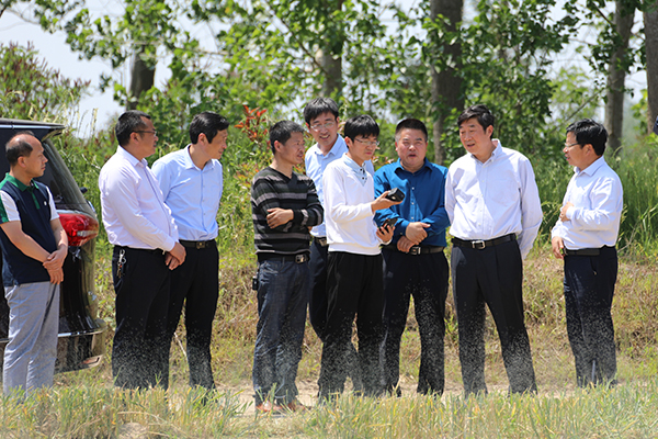 胡兆輝首先來到臨海林苗一體化項目區(qū)5009公路“鶴鄉(xiāng)綠徑”及蘇墾米業(yè)臨海米廠擬建倉儲項目區(qū)調(diào)研,肯定了臨海林業(yè)的發(fā)展。他在二生產(chǎn)區(qū)踏田察看了稻麥超高產(chǎn)栽培及配套技術(shù)千畝示范片的麥子長勢、長相,了解臨海麥田管理及三夏工作的開展情況;在三生產(chǎn)區(qū),對蘇墾農(nóng)發(fā)智慧農(nóng)業(yè)園項目區(qū)及配套設(shè)施建設(shè)和綠化規(guī)劃情況作了詳細了解。在四生產(chǎn)區(qū),胡兆輝步入正在收割的麥田,仔細察看麥田機械收割情況,又來到微噴灌育秧的秧畦邊細心察看、了解水稻育秧及無人機飛防情況。他勉勵現(xiàn)場工作的年輕農(nóng)技人員,希望他們努力在干事創(chuàng)業(yè)中成長。