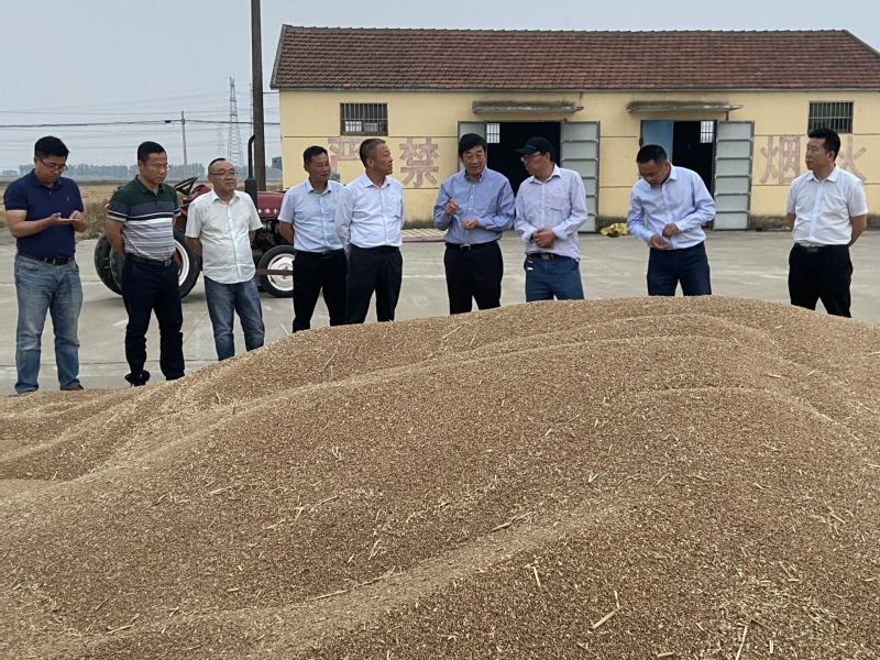 胡兆輝一行實(shí)地察看了小麥曬場和新建烘干機(jī)項(xiàng)目,仔細(xì)了解和聽取相關(guān)情況介紹。崔靜波對農(nóng)場公司社會職能改革、產(chǎn)業(yè)發(fā)展、招商引資、林業(yè)生產(chǎn)、黨建工作、亮化工程、民生項(xiàng)目工程建設(shè)等方面進(jìn)行了匯報(bào)。邱海濤對海安分公司小麥?zhǔn)崭钸M(jìn)度、金沙基地“南粳46”種植進(jìn)度、質(zhì)量控制體系運(yùn)行、農(nóng)業(yè)社會化服務(wù)等“三夏”開展情況進(jìn)行了匯報(bào)。