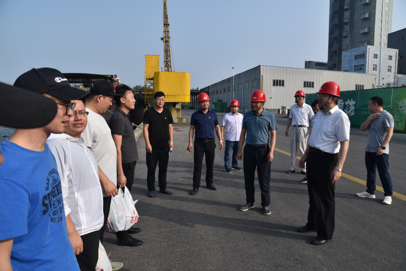 楊義林一行來到箱式生產線、工務部維修車間和船運碼頭,看望慰問了高溫下作業的一線員工,并親手將清涼降暑慰問用品送到了員工們手中。楊義林對奮戰高溫、堅守崗位的一線員工表示感謝,并反復叮囑大家當前在高溫天氣下,一定要做好日常勞保防護,多補充水分鹽分,落實好消暑降溫措施,注意安全。