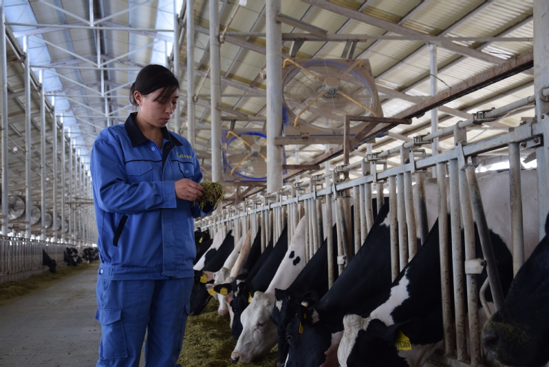 2020年,因為新型冠狀病毒肺炎正在肆虐全國,肉蛋奶又是居民生活必需品。新冠肺炎疫情發生以來,養殖業發展遇到新的困難,作為一名黨員,祝英告誡自己不能退縮,她主動沖在生產第一線,為職工宣傳防疫知識,與同事們一起放棄春節休假,一直奮戰在抗疫第一線,讓“小團隊”發揮“大作用”。疫情就是命令,防控就是責任。戰“疫”號角吹響后,祝英坦言,“作為一名黨員,抗擊疫情,我必須時刻堅守在第一線。”在困難面前,東旺公司生產幾乎沒有受到影響,產量穩定、牛群健康狀況良好,這與一百多名與祝英一樣平凡的“逆行者”的努力是分不開的。一個黨員就是一面旗幟,一個支部就是一座堡壘,祝英用行動詮釋了一名共產黨員的初心和使命,展現一名新時代女性的責任與擔當,在平凡的崗位盡展巾幗風采。(圖為祝英查看飼料情況)