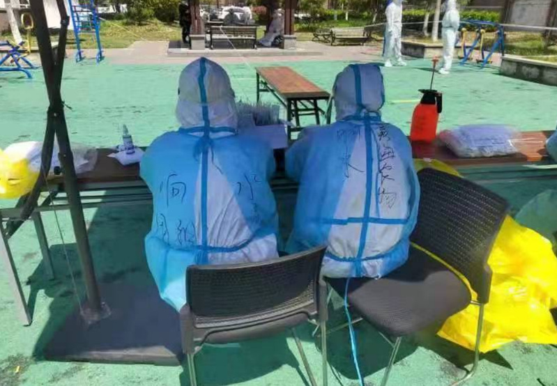 一日為醫(yī),終生不棄。張紅主動(dòng)擔(dān)當(dāng)國企的責(zé)任與使命。4月4日凌晨6點(diǎn)趕到上海浦東新區(qū)川沙鎮(zhèn)社區(qū),醫(yī)務(wù)人員相互之間穿戴好防護(hù)服、護(hù)目鏡、口罩、鞋套、手套、帽子,并進(jìn)行嚴(yán)而又嚴(yán)、實(shí)而又實(shí)、細(xì)而又細(xì)的防護(hù)檢查,沒有休息片刻就立即投入核酸采集的戰(zhàn)斗中。浦東新區(qū)疫情形勢嚴(yán)峻,面對被感染的風(fēng)險(xiǎn)和高負(fù)荷的工作壓力,張紅有條不紊地進(jìn)行核酸檢測采集工作。這是上海浦東新區(qū)全民核酸檢測第三天,也是核酸采集壓力最大的一天,采集現(xiàn)場的布置、醫(yī)護(hù)人員與新設(shè)備的磨合、工作人員與社區(qū)、居委會(huì)人員的協(xié)調(diào)、居民采集核酸的急迫心情等,多重矛盾交織在一起。對此,張紅和其他醫(yī)務(wù)人員爭分奪秒抓緊進(jìn)行核酸檢測,炎熱的天氣、高強(qiáng)度的工作加之憋悶的防護(hù)裝備,衣衫不停的被汗水浸濕,再被身體烘干,再浸濕……臉部深深的壓痕成了標(biāo)配,人在汗水“泡”著里工作成了常態(tài)……到了晚上,為了緩解上海市疫情防控壓力,張紅又和同事們一起乘上大客車連夜返回到響水,趕到響水時(shí)已是4月5日凌晨1點(diǎn)多了。第一趟完成核酸檢測任務(wù)連續(xù)30個(gè)小時(shí)不吃不喝,張紅不言苦、不叫累。她堅(jiān)持以高度的責(zé)任心為前來做核酸檢測的人員提供服務(wù),她用真情和愛心譜寫著平凡而動(dòng)人的天使之歌!
