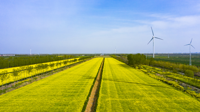4月的新洋,風和日麗,春意漸濃,5000多畝油菜花陸續盛開,航拍視角下,井然有序的油菜花田與大地相映成趣,蔚為壯觀。田野里成片的油菜花輕揚細腰,與綠色的麥田和諧搭配,構成了一幅幅春意盎然的美麗畫卷,到處呈現一派生機勃勃、豐收在望的景象。