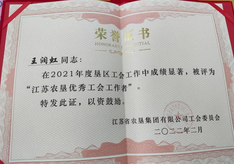 漫漫人生路,一路無悔走;28度風(fēng)雨28度春秋,風(fēng)霜雨雪搏激流!今年50歲的王潤虹,中共黨員,大專學(xué)歷,1994年8月參加工作,現(xiàn)任江蘇省黃海農(nóng)場公司工會女工委主任、審計(jì)部主管、計(jì)劃財(cái)務(wù)部主管等職。王潤虹沒有轟轟烈烈、驚天動地的感人事跡,但她有樂于奉獻(xiàn)的精神;她從事工會、審計(jì)和財(cái)務(wù)工作多年來,憑著對企業(yè)和職工真誠無私的愛,在黨史學(xué)習(xí)教育中以實(shí)際行動踐行為民服務(wù)宗旨;心系職工居民冷暖,做職工的貼心人;為困難職工排憂解難,付出了自己的“心血與汗水”。使工會等工作在農(nóng)場公司黨委的領(lǐng)導(dǎo)下,取得顯著成績。黃海農(nóng)場公司工會在2021年度被全國婦聯(lián)授予“全國巾國建功先進(jìn)集體”;王潤虹本人在2021年度被評為“江蘇農(nóng)墾優(yōu)秀工會工作者”;同年被響水縣婦聯(lián)評為年度綜合“先進(jìn)個人”;她還連續(xù)多年被農(nóng)場公司黨委表彰為“先進(jìn)工作者”。