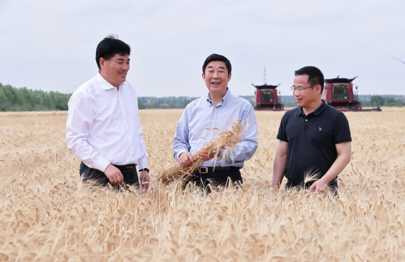 胡兆輝首先考察了大麥?zhǔn)崭瞵F(xiàn)場以及小麥、油菜長勢情況,他指出,糧食安全是“國之大者”,要深刻認(rèn)識國家實施糧食安全戰(zhàn)略的重要性和必要性,切實扛起保障糧食安全“國家隊”的職責(zé)使命。新洋夏熟“三大作物”大麥、小麥和油菜長勢喜人、豐收在望,“豐產(chǎn)、豐收、增效”要素集聚、優(yōu)勢凸顯,要搶抓當(dāng)前晴好天氣、借勢當(dāng)前利好局面,乘勝追擊、穩(wěn)扎穩(wěn)打,在夏收、夏種、夏管等關(guān)鍵技術(shù)措施上下足功夫,質(zhì)量并舉確保夏糧顆粒歸倉,精細(xì)管理力促水稻穩(wěn)產(chǎn)高產(chǎn),誓奪“三夏”工作全面勝利,為蘇墾農(nóng)發(fā)股份公司和集團公司作貢獻。