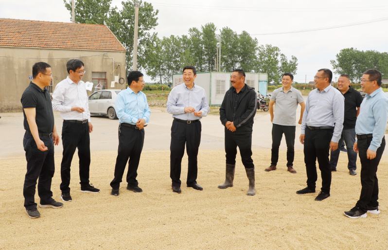 胡兆輝指出,三夏工作是墾區(qū)當(dāng)前的重點(diǎn)工作,從臨海井然有序的三夏工作場面可以看出,臨海對三夏工作高度重視,干部職工戰(zhàn)三夏、促生產(chǎn)的干勁足、士氣高。當(dāng)前,要利用晴好天氣全力做好保種保糧工作,協(xié)調(diào)好啤麥的收儲工作,要確保夏糧生產(chǎn)和保種工作全勝,更要抓好育秧、栽插管理,為秋糧豐收打好堅(jiān)實(shí)基礎(chǔ)。胡兆輝強(qiáng)調(diào),要協(xié)同各方面力量高效推進(jìn)三夏生產(chǎn),認(rèn)真落實(shí)好各層各級安全責(zé)任,抓好安全生產(chǎn)。要加快推進(jìn)江蘇農(nóng)墾智慧農(nóng)業(yè)科技園項(xiàng)目建設(shè),讓園區(qū)盡快、盡早建成并投入使用,力爭把智慧農(nóng)業(yè)科技園建成江蘇農(nóng)墾研發(fā)高科技智慧農(nóng)業(yè)的孵化器,成為江蘇農(nóng)墾引領(lǐng)農(nóng)業(yè)現(xiàn)代化發(fā)展的展示平臺。胡兆輝要求,臨海要加強(qiáng)與地方政府部門溝通聯(lián)系,加強(qiáng)與相關(guān)單位的交流合作,積極做好外拓基地的開發(fā)、建設(shè)和發(fā)展工作。要有效利用好外拓基地現(xiàn)有資源,通過輸入江蘇農(nóng)墾先進(jìn)的農(nóng)業(yè)生產(chǎn)技術(shù)和管理模式,大力提高外拓基地農(nóng)業(yè)生產(chǎn)水平,凸顯江蘇農(nóng)墾農(nóng)業(yè)生產(chǎn)的質(zhì)量優(yōu)勢、效益優(yōu)勢、發(fā)展優(yōu)勢,發(fā)揮好示范引領(lǐng)區(qū)域現(xiàn)代農(nóng)業(yè)發(fā)展的生力軍作用。