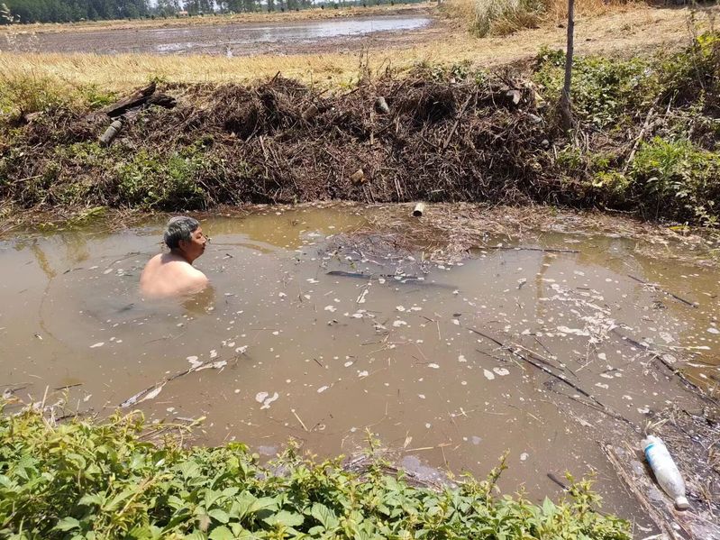 自十二隊(duì)收割以來(lái),王國(guó)來(lái)要在田頭,查收割損失率,看秸稈留茬高度;要在場(chǎng)頭,查登場(chǎng)小麥水分,看小麥籽粒飽滿(mǎn)度,協(xié)調(diào)糧食堆放、調(diào)運(yùn);要在路口,指揮拖拉機(jī)旋田作業(yè);要心系秧苗……6月8日,十二隊(duì)中閘嚴(yán)重缺水,經(jīng)查是排水渠堵塞。排水渠里腐爛的雜草漾著白沫,蚊蟲(chóng)嗡嗡亂撞,王國(guó)來(lái)毫不猶豫跳進(jìn)了水中。一遍、二遍,他一次次潛入水中,經(jīng)過(guò)1個(gè)多小時(shí)腳挑手掏,疏通堵塞,恢復(fù)排水順暢。
