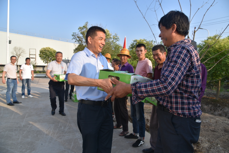 在倉儲(chǔ)部門口,公司黨委書記、董事長郭世平,黨委副書記、總經(jīng)理吳善河率公司領(lǐng)導(dǎo)班子成員為89名勞務(wù)外包一線工作人員送去了清甜涼爽的黃金瓜,同時(shí)親切地詢問了一線員工的身體狀況和工作情況,對他們的辛勤付出表示感謝,并千萬叮囑大家炎夏期間注意避暑、保重身體,合理安排工作時(shí)間,避開高溫酷暑時(shí)段,也希望他們能夠深刻感受到公司黨委的人文關(guān)懷和“在廠如同在家”的幸福感。
