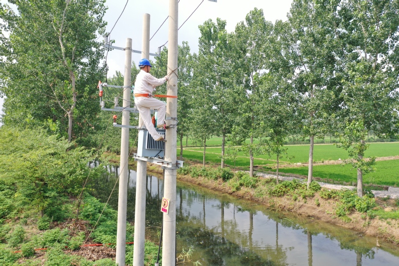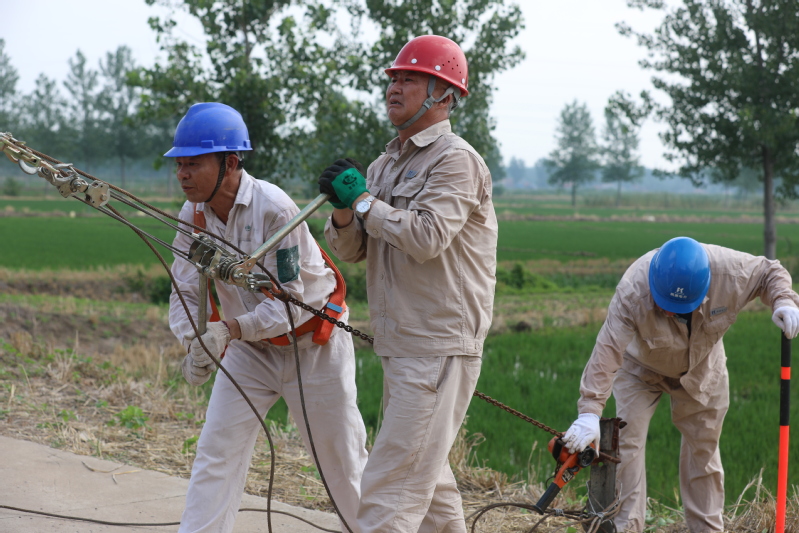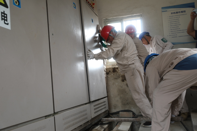 7月5日上午6點10分。“楊隊啊,8隊南電站不工作了!”接報后,凱惠電力寶應(yīng)湖分公司負(fù)責(zé)人楊加春立即組織3名電工趕到現(xiàn)場。經(jīng)排查,是電站開關(guān)柜壞了。落實開關(guān)柜、組織材料,他們兵分兩路共同推進(jìn)。十余個電話打過后,趙愛華終于在農(nóng)機庫找到一臺型號匹配的開關(guān)柜。8點趙愛華等將登高工具、絕緣棒、電纜等材料運到電站。電工邵榮祥戴上安全帽,用絕緣棒將三相開關(guān)斷開,率先爬上高壓電桿,又和電工趙愛華、劉福相一起將壞電柜上的控制開關(guān)線一一拆除。不足9平方的泵房里,悶熱狹小,壓得人透不氣來,地處田間雜草叢中,蚊蟲直撞人臉,他們?nèi)徊活櫍裢度霌屝蓿?/span>不一會兒就大汗淋漓。拆除后,他們又與8隊工人一起把新柜抬進(jìn)泵房。200多斤開關(guān)柜死沉死沉,狹小的空間嚴(yán)重限制作業(yè),一不小心趙愛華的手肘撞在了電柜上,一陣鉆心得痛。終于把柜子擺到合適位置,接線、拉電纜,電工們立即展開。11點,邵榮祥再次爬上高壓電桿,推上開關(guān),啟動控制,電站發(fā)出隆隆的歡唱。此時,溫度計顯示的室外溫度達(dá)到了43攝氏度,電工們已全身濕透。