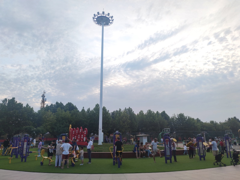 7月19日傍晚,江蘇省射陽縣淮海農(nóng)場職工休閑體育運動廣場重新開放,廣場南側(cè)橢圓形的花池邊,新安裝的34套嶄新的健身器材立即吸引了周邊的職工居民和孩童等前來愜意地玩耍,場面十分熱鬧壯觀。