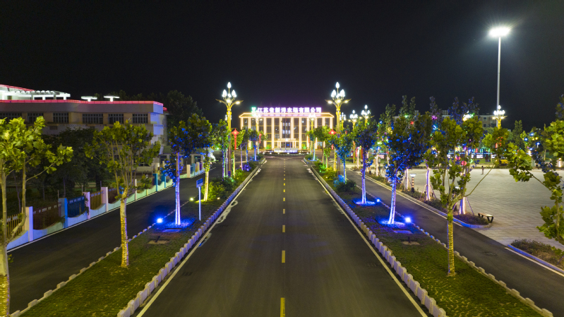 夜幕降臨,華燈初上,新洋農(nóng)場各處燈光陸續(xù)亮起,整個城鎮(zhèn)變成燈的海洋、光的世界,夜景如夢如幻景美如畫。置身于黨建文化廣場上空鳥瞰這座城鎮(zhèn),燈火輝煌,溢彩流光。