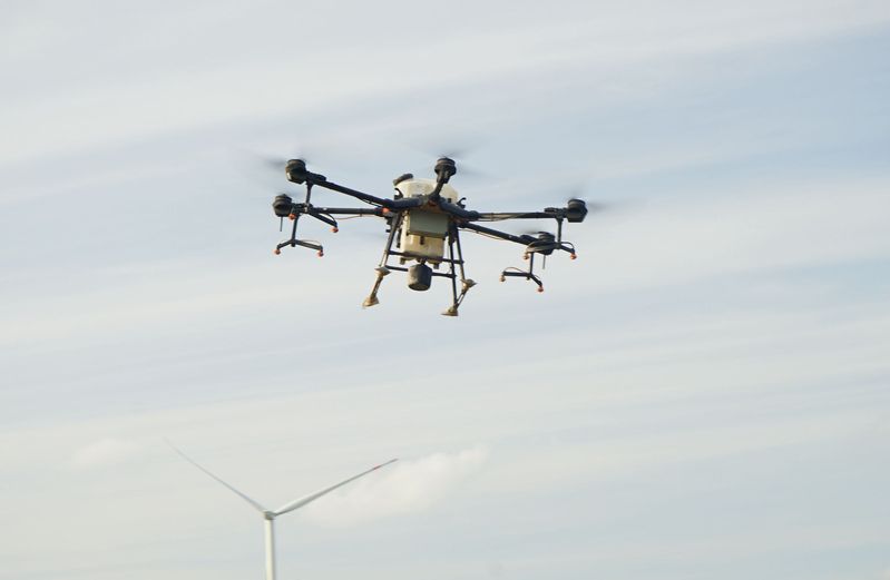 蘇墾農(nóng)發(fā)新洋分公司農(nóng)水中心主任何成就介紹說,測繪巡田無人機采用多光譜技術(shù)用一天時間就能拍攝下分公司6萬畝農(nóng)田的雜草或病蟲害的精確分布圖,我們將此信息告知各生產(chǎn)區(qū)和大隊,各生產(chǎn)區(qū)和大隊根據(jù)分布圖顯示的雜草和病蟲害的輕重狀況,與我們聯(lián)系派出植保無人機到指定條田進行精準施藥,穩(wěn)、準、狠地在第一時間消滅雜草或病蟲害。他說,新洋分公司近幾年購進了多臺測繪巡田無人機和植保無人機,兩機相互配合,治蟲、除草精準噴藥,對農(nóng)作物實行智慧管理,現(xiàn)代農(nóng)業(yè)在新洋展現(xiàn)迷人的風采。