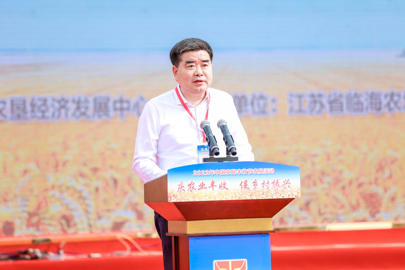吳岡玉在致辭時(shí)說(shuō),近年來(lái),射陽(yáng)縣委縣政府與臨海農(nóng)場(chǎng)公司、新洋農(nóng)場(chǎng)公司、淮海農(nóng)場(chǎng)公司一起,認(rèn)真落實(shí)中央和省市關(guān)于農(nóng)墾改革發(fā)展部署要求,持續(xù)深化墾地融合發(fā)展,在推動(dòng)智慧農(nóng)業(yè)發(fā)展、做強(qiáng)“射陽(yáng)大米”品牌、建設(shè)美麗田園鄉(xiāng)村等方面成效顯著,江蘇農(nóng)墾麥芽入選2022年度江蘇省省長(zhǎng)質(zhì)量獎(jiǎng),縣農(nóng)業(yè)農(nóng)村局獲評(píng)全省夏糧生產(chǎn)貢獻(xiàn)突出單位。射陽(yáng)縣將以這次農(nóng)墾豐收活動(dòng)為新起點(diǎn),錨定創(chuàng)建國(guó)家級(jí)農(nóng)業(yè)現(xiàn)代化示范區(qū)和省級(jí)農(nóng)業(yè)現(xiàn)代化先行區(qū)目標(biāo),聯(lián)合省農(nóng)墾集團(tuán)的資源、技術(shù)、市場(chǎng)等優(yōu)勢(shì),推動(dòng)駐射陽(yáng)各農(nóng)場(chǎng)與縣屬各國(guó)有企業(yè)、友鄰鎮(zhèn)區(qū)一道,在推進(jìn)種業(yè)振興和高標(biāo)準(zhǔn)農(nóng)田建設(shè)方面共同發(fā)力,積極推進(jìn)“三品一標(biāo)”創(chuàng)建,合力打造江蘇東部沿海大糧倉(cāng)、生態(tài)糧食大超市、鄉(xiāng)村休閑大花園,共同繪就新時(shí)代魚(yú)米之鄉(xiāng)的美麗畫(huà)卷。