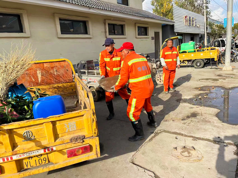 他們是一群“突擊戰(zhàn)士”。托運(yùn)垃圾桶、清理背街小巷雜草、清理河道垃圾、排水泄洪、環(huán)境消殺......不論嚴(yán)寒酷暑,哪里有需要,他們就在哪里。他們就是“環(huán)衛(wèi)突擊隊(duì)”成員江堯根、楊文山、徐志庭。他們的平均年齡在63歲,他們不怕苦、不怕臟。夏季烈日當(dāng)頭下,他們?cè)谇謇砗拥览⑼羞\(yùn)垃圾桶,冬季嚴(yán)寒風(fēng)雪下,他們?cè)谇謇肀辰中∠铩=瓐蚋嬖V筆者,“我從46歲起從事環(huán)衛(wèi)事業(yè),到現(xiàn)在有17年了,能守護(hù)農(nóng)場(chǎng)環(huán)境衛(wèi)生,我覺(jué)得很光榮,很有意義。”