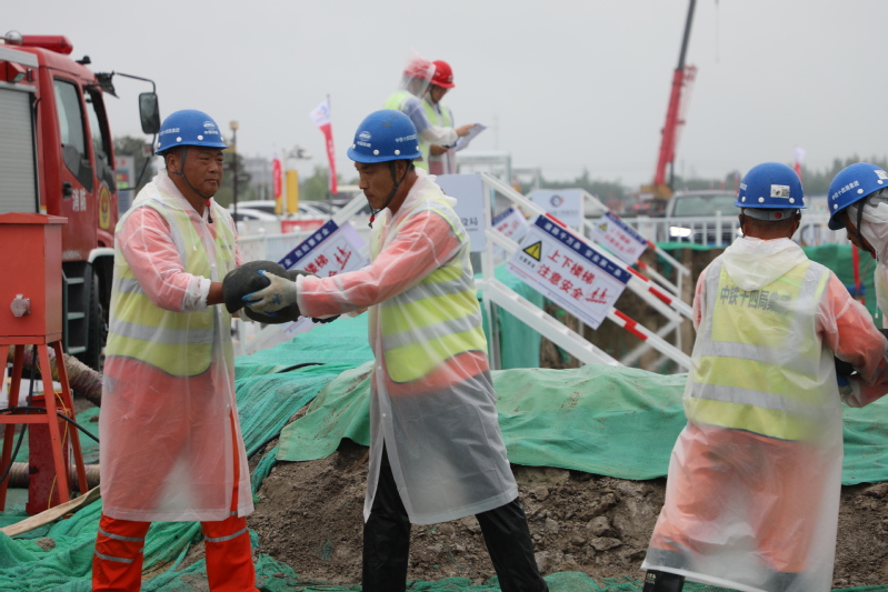 為進(jìn)一步樹牢安全發(fā)展理念、壓實(shí)安全生產(chǎn)責(zé)任、防范化解重大風(fēng)險(xiǎn)、提升干部職工應(yīng)急處置能力,8月29日,江心沙攜手中鐵十四局海太長江隧道工程項(xiàng)目部開展防臺(tái)防汛綜合應(yīng)急演練。圖為筑堤防洪、醫(yī)療救助、緊急撤離等演練場(chǎng)景。