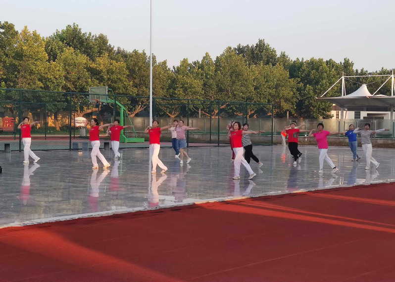 開始,這支健身操跳舞的場(chǎng)地是在淮海禮堂前的廣場(chǎng)位置,但考慮到兩邊是居民區(qū),為了不影響晚起居民的休息,她們就將場(chǎng)地移到職工休閑體育運(yùn)動(dòng)廣場(chǎng)上的舞蹈池上,并且重新購置了音響,播放健身操的音量也調(diào)至恰好位置。77歲的姚奶奶笑著說:“有了這支舞蹈隊(duì),我晨煉健身操,晚跳廣場(chǎng)舞,身體康健了,渾身有勁了,生活更有奔頭啦。”