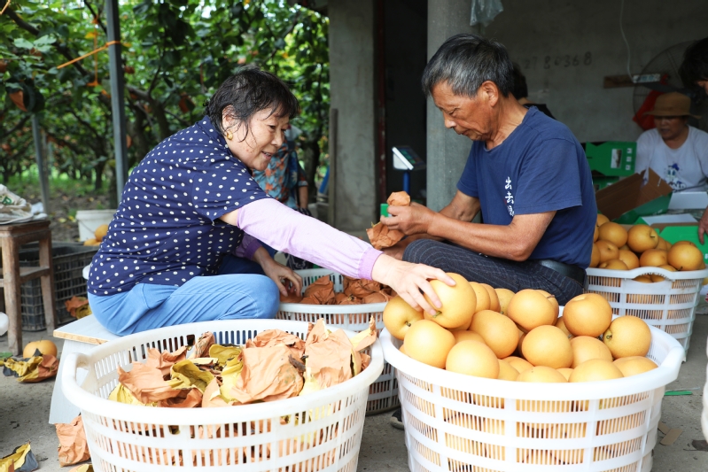 近日,江心沙農(nóng)場(chǎng)“明星水果”秋月梨、陽光玫瑰等火爆上市,迎來海量訂單,僅兩日就售出2000箱,20000余斤。據(jù)介紹,此次訂單主要來自周邊市場(chǎng),還沒開園就咨詢電話不斷,其中往年老顧客占八成,回頭率頗高。圖為批量采摘、包裝,和零售場(chǎng)景。