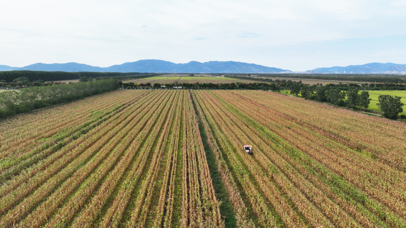 今年江蘇農(nóng)墾大豆玉米帶狀復(fù)合種植面積達(dá)12萬畝,目前大豆玉米已經(jīng)陸續(xù)成熟。圖為蘇墾農(nóng)發(fā)東辛分公司農(nóng)機(jī)在田間收割大豆。