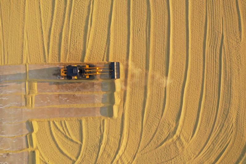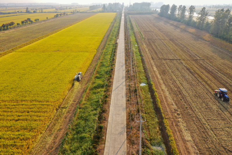 金秋十月,豐收季節(jié)。高空俯瞰寶應(yīng)湖農(nóng)場(chǎng),田間地頭,收割機(jī)來(lái)回穿梭,曬糧場(chǎng),稻谷飄香,處處呈現(xiàn)如畫(huà)般的豐收美景。水稻收割完之后,旋耕機(jī)、播種機(jī)隨即“登場(chǎng)”,將一粒粒麥種播撒進(jìn)田間,為來(lái)年豐收打下基礎(chǔ)。