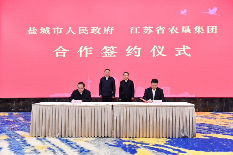 吳本輝對(duì)鹽城市委市政府長期關(guān)心支持農(nóng)墾各項(xiàng)事業(yè)表示感謝,并介紹了集團(tuán)改革發(fā)展總體情況。他說,不忘來時(shí)路,墾地一家親。鹽城是江蘇農(nóng)墾的搖籃和發(fā)源地,也是墾地融合發(fā)展的示范地。當(dāng)前,集團(tuán)上下正深入貫徹落實(shí)省委信長星書記調(diào)研農(nóng)墾重要講話精神,按照集團(tuán)第二次黨代會(huì)確立的戰(zhàn)略目標(biāo),全力打造“一核引領(lǐng)、雙擎驅(qū)動(dòng)”的現(xiàn)代農(nóng)業(yè)航母,以“三大工程、八項(xiàng)行動(dòng)”為工作總抓手,通過固本、培元、興新,促進(jìn)農(nóng)業(yè)一二三產(chǎn)業(yè)融合發(fā)展,布局戰(zhàn)略性新興產(chǎn)業(yè)和新質(zhì)生產(chǎn)力。此次雙方簽署戰(zhàn)略合作協(xié)議,圍繞優(yōu)質(zhì)農(nóng)產(chǎn)品供應(yīng)鏈、全農(nóng)社會(huì)化服務(wù)、補(bǔ)充耕地項(xiàng)目、新藥孵化平臺(tái)、秸稈綜合利用、完善社會(huì)治理等展開全方位合作,共同打造墾地合作的“鹽城樣板”,標(biāo)志著雙方合作邁上新的臺(tái)階。期待墾地雙方共同擦亮現(xiàn)代農(nóng)業(yè)名片,在構(gòu)建國有農(nóng)場(chǎng)聯(lián)盟、建設(shè)規(guī)模化大基地、打造集群化大產(chǎn)業(yè)、推進(jìn)綠色生態(tài)轉(zhuǎn)型和醫(yī)藥健康產(chǎn)業(yè)發(fā)展等領(lǐng)域加強(qiáng)合作,不斷鞏固和深化全面、長期、穩(wěn)定的戰(zhàn)略合作關(guān)系,共同為推動(dòng)高質(zhì)量發(fā)展和農(nóng)業(yè)現(xiàn)代化走在前作出新的更大貢獻(xiàn)。