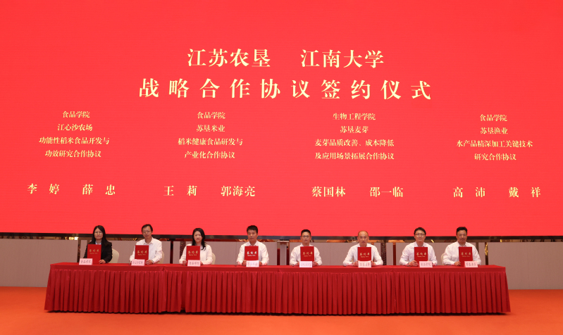 集團公司總經(jīng)濟師、相關(guān)部門負責人,江心沙農(nóng)場、蘇墾農(nóng)發(fā)、蘇墾漁業(yè)等單位負責人,江南大學相關(guān)學院及部門負責人、專家教授等參加簽約儀式。