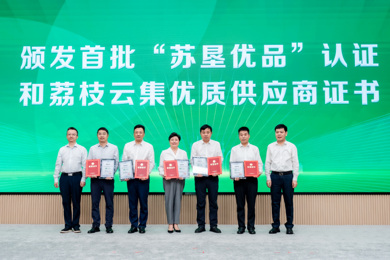 現(xiàn)場還舉行了“蘇墾優(yōu)品”認證證書及“荔枝云集優(yōu)質(zhì)供應商”證書頒發(fā)儀式。江蘇省農(nóng)墾米業(yè)集團有限公司、蘇州蘇墾現(xiàn)代農(nóng)業(yè)發(fā)展有限公司、金太陽糧油股份有限公司、江蘇農(nóng)墾漁業(yè)科技有限公司、江蘇農(nóng)墾乳業(yè)科技有限公司五家企業(yè)獲得首批授權(quán)。