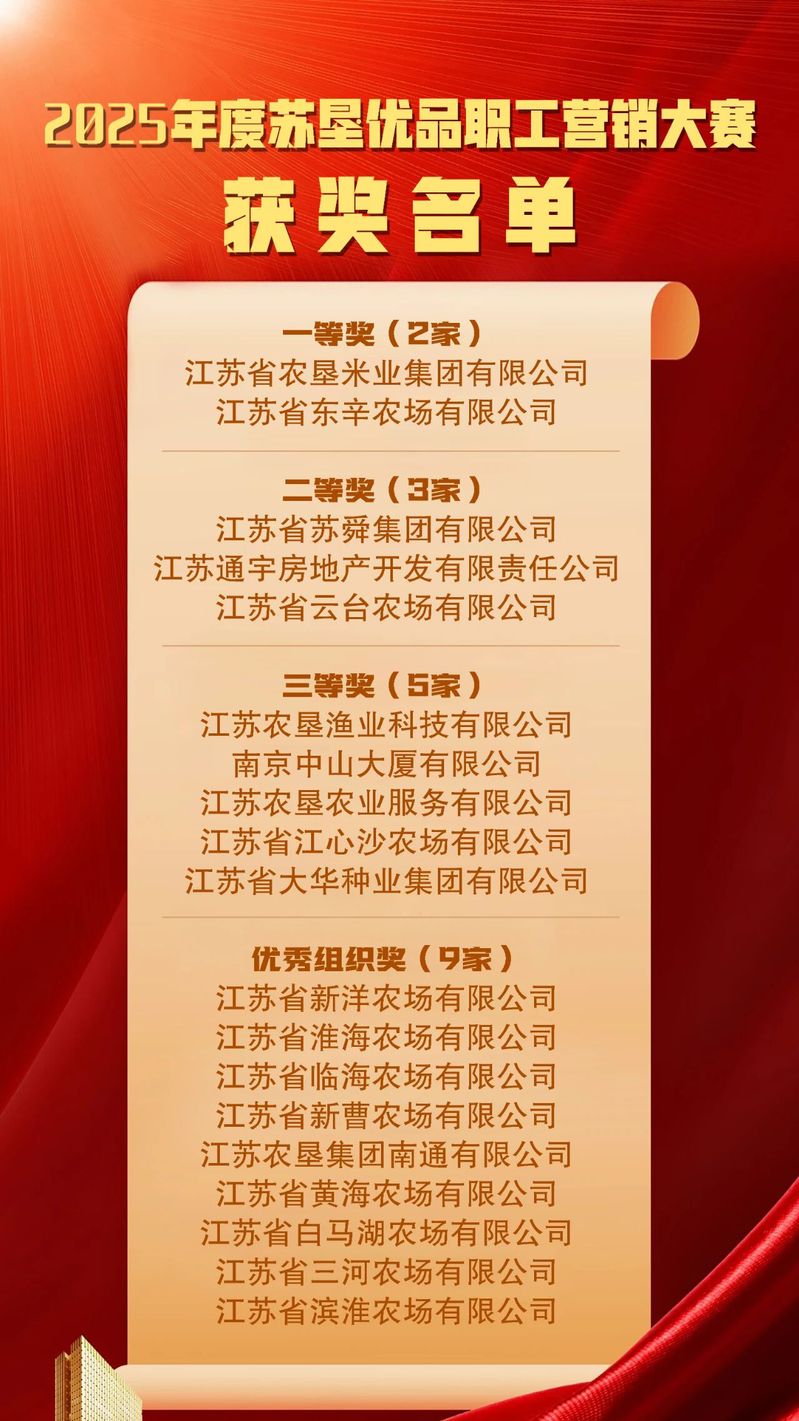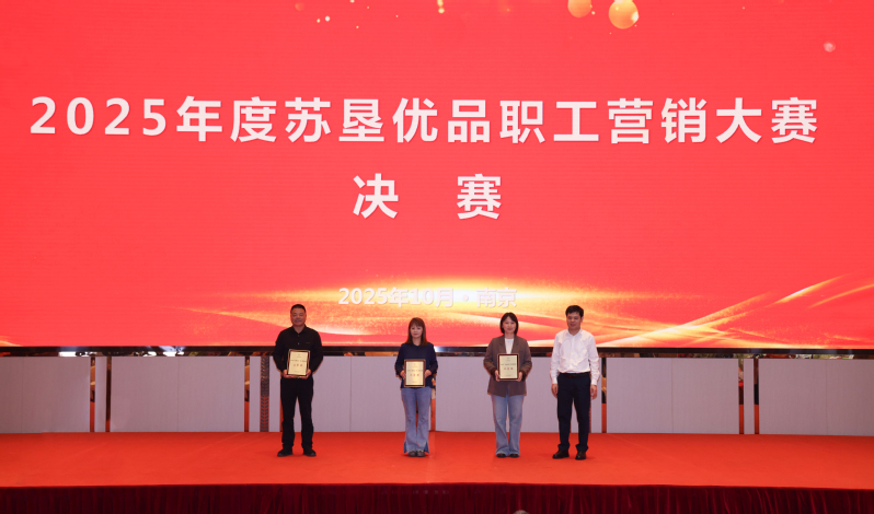 10月17日,備受關(guān)注的2025年 “蘇墾優(yōu)品” 職工營銷大賽決賽在寧圓滿收官。集團公司黨委書記、董事長吳本輝,黨委副書記朱浩,黨委委員、副總經(jīng)理王立新出席活動并為獲獎團隊頒獎。