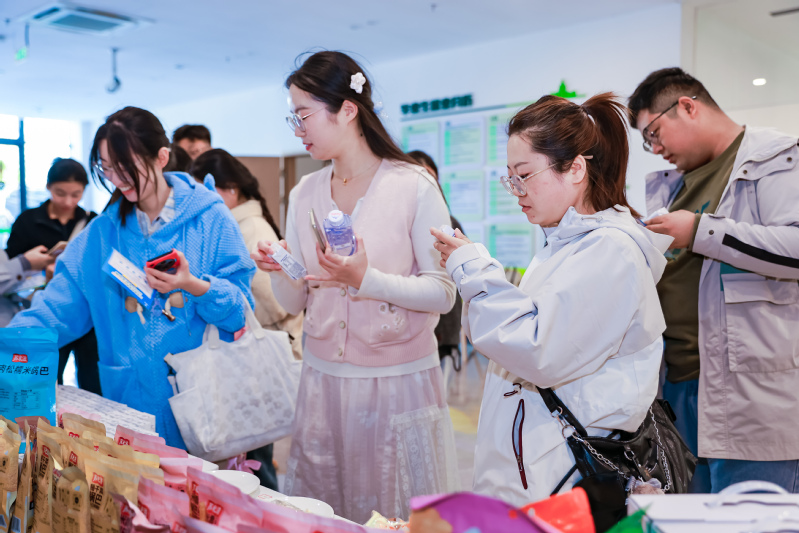 宣講會現場,工作人員還特意帶來多款江蘇農墾的產品與同學們分享。蘇墾乳業的簡蘇A2β原生高鈣純牛奶、蘇墾米業的蘇米滋鍋巴,以及新曹農場即將上市的玉谷香鹵蛋,都收獲一致好評。這些實實在在的產品,讓同學們直觀感受到江蘇農墾對質量與安全的追求。