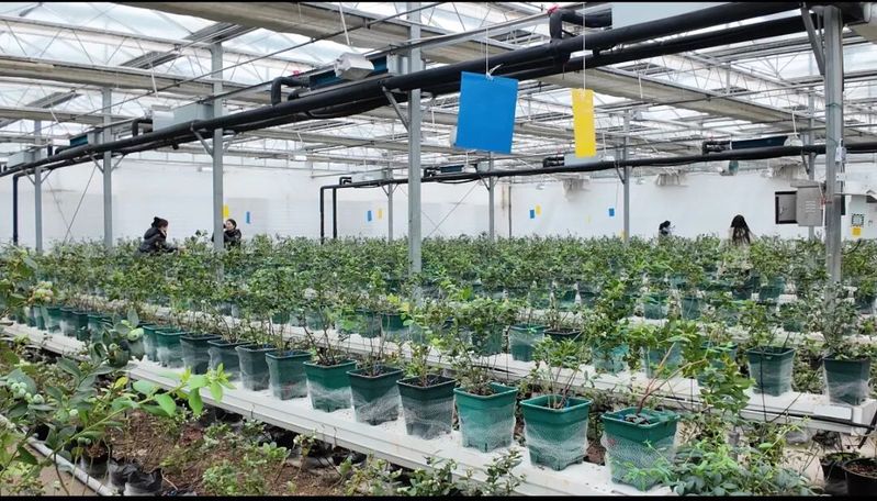 3月里春寒料峭,蘇墾林業(yè)藍莓基地內(nèi)卻暖意融融、果香四溢。一顆顆裹著天然白霜的藍莓如藍寶石般綴滿枝頭,在智能溫室的調(diào)控下提前成熟,迎來今春首批采摘客。