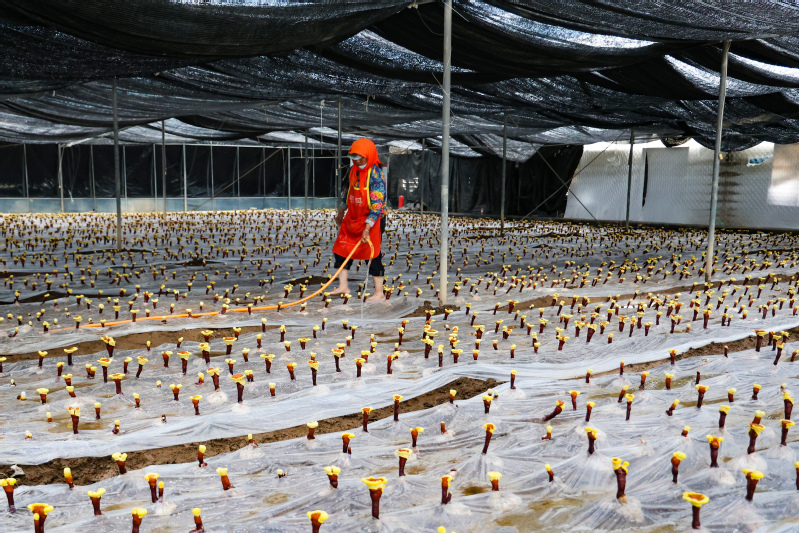 特色種植拓展農(nóng)業(yè)多元價(jià)值。食用菌種植基地內(nèi),一朵朵平菇破袋而出。通過標(biāo)準(zhǔn)化菌棒管理和環(huán)境控制技術(shù),一個(gè)菌棒能連續(xù)收四到五茬,每茬產(chǎn)量約600斤,產(chǎn)品主要供應(yīng)本地商超和社群團(tuán)購渠道。靈芝種植基地則探索高附加值農(nóng)業(yè)發(fā)展路徑。采用仿野生栽培技術(shù)結(jié)合智能溫控系統(tǒng),產(chǎn)出的靈芝孢子粉破壁率達(dá)99.6%,有效成分含量遠(yuǎn)超行業(yè)標(biāo)準(zhǔn)。云水灣景區(qū)創(chuàng)新引入的盆栽藍(lán)莓項(xiàng)目。600余盆盆栽藍(lán)莓錯(cuò)落有致,大棚內(nèi)的水肥一體化設(shè)備通過滴箭將水溶肥精準(zhǔn)輸送至每株根系,技術(shù)人員將基質(zhì)pH值穩(wěn)定在最適宜藍(lán)莓生長的4.5-5.5區(qū)間,游客既可到景區(qū)現(xiàn)摘現(xiàn)嘗,也能買回家放陽臺(tái)養(yǎng)護(hù),讓“盆景”變“果盤”。