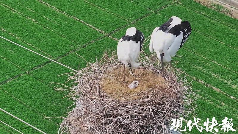 3月19日中午,江蘇農(nóng)墾臨海農(nóng)場(chǎng)員工宋婧通過(guò)一個(gè)多月的耐心蹲守和精心拍攝,成功用無(wú)人機(jī)航拍技術(shù),全程記錄下國(guó)家一級(jí)保護(hù)野生動(dòng)物東方白鸛從產(chǎn)蛋、孵化到三只“寶寶”孵化出殼的全過(guò)程。