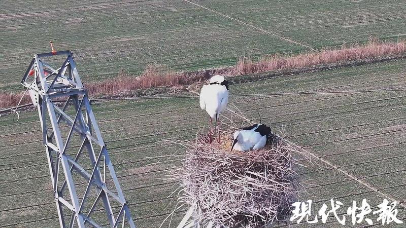 拍攝者宋婧告訴現(xiàn)代快報(bào)記者,2月13日中午,她利用中午休息時(shí)間,用無(wú)人機(jī)拍攝麥子的生長(zhǎng)狀況時(shí),發(fā)現(xiàn)五分場(chǎng)境內(nèi)的一座高壓線鐵塔上,有大鳥(niǎo)正忙著搭建鳥(niǎo)巢,便立即取出隨身攜帶的無(wú)人機(jī),在不驚擾鳥(niǎo)兒的情況下進(jìn)行拍攝。