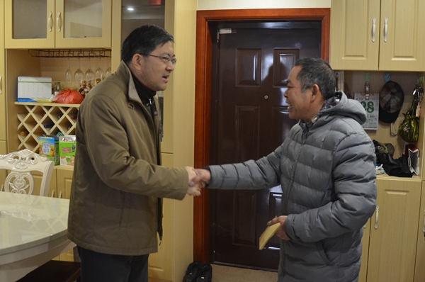 1月27日上午,集團(tuán)公司總經(jīng)理胡兆輝一行到海安走訪慰問困難職工。南通農(nóng)墾事業(yè)管理辦公室主任許嘉寧、海安農(nóng)場公司黨委書記崔靜波及班子其他成員陪同慰問。    胡兆輝一行,首先來到患病老人楊思俊家中。