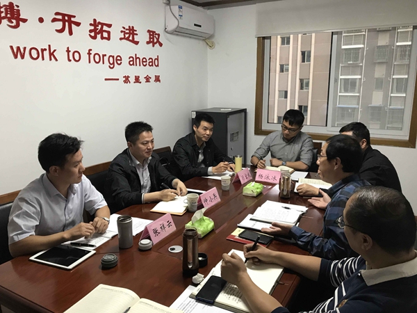 10月10日下午,集團(tuán)公司黨委委員、副總經(jīng)理仲小兵一行到蘇墾金屬調(diào)研指導(dǎo)工作,蘇墾金屬公司領(lǐng)導(dǎo)班子陪同。  仲小兵前往銷售網(wǎng)點、倉儲公司實地考察了解公司的具體業(yè)務(wù)情況,并聽取了蘇墾金屬前三季度經(jīng)營