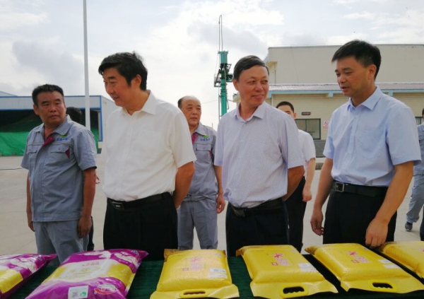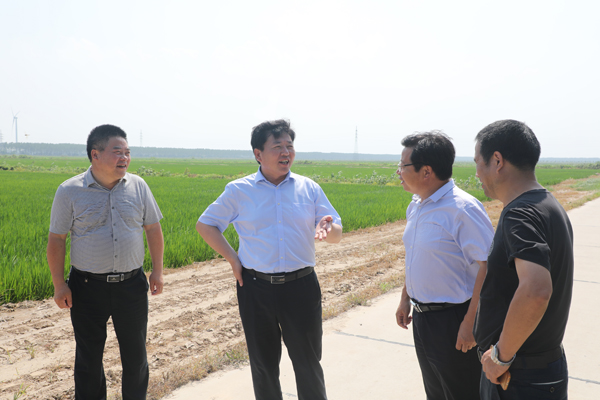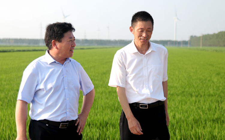 8月5日,集團(tuán)公司黨委委員、蘇墾農(nóng)發(fā)股份公司總裁蘇志富一行到蘇墾農(nóng)發(fā)股份公司黃海分公司檢查指導(dǎo)工作。黃海分公司總經(jīng)理賀在銳、副總經(jīng)理沈進(jìn)松陪同介紹情況。  蘇志富冒著酷暑深入到黃海分公司水稻生產(chǎn)一