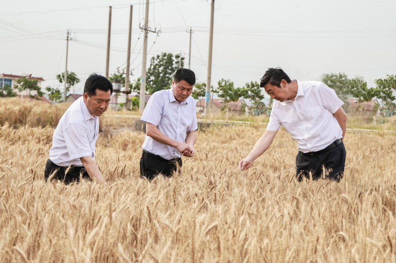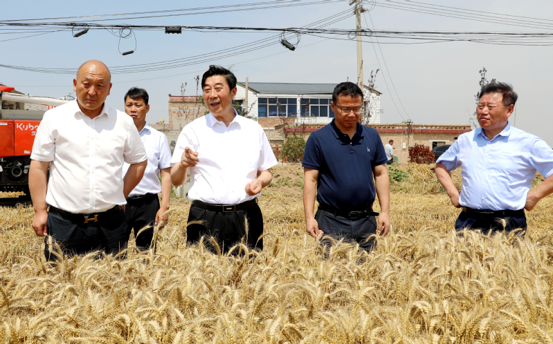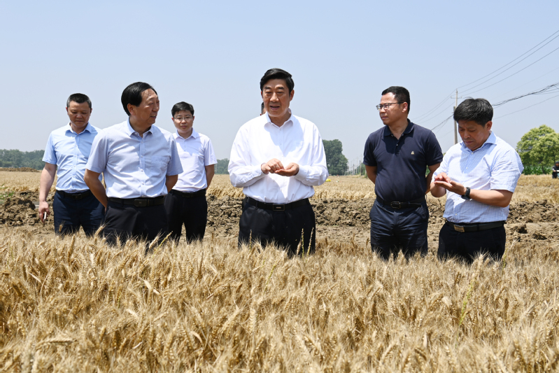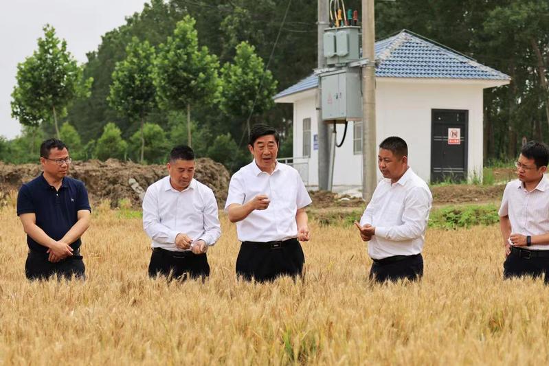 6月1日下午,集團(tuán)公司黨委副書記、總經(jīng)理胡兆輝到新曹調(diào)研指導(dǎo)“三夏”工作和農(nóng)場(chǎng)公司產(chǎn)業(yè)發(fā)展。胡兆輝先后察看了蘇墾農(nóng)發(fā)新曹分公司油菜收割現(xiàn)場(chǎng)、小麥?zhǔn)崭瞵F(xiàn)場(chǎng)、水稻秧池、耕整打作現(xiàn)場(chǎng)、糧食烘干線和晾曬場(chǎng)、高標(biāo)準(zhǔn)農(nóng)田建設(shè)項(xiàng)目區(qū),以及農(nóng)場(chǎng)公司原絲綢廠廠房、日本矮麥冬套種基地,認(rèn)真聽取有關(guān)人員的情況介紹,與一線工作人員親切交談,詳細(xì)了解蘇墾農(nóng)發(fā)新曹分公司“三夏”工作進(jìn)展和農(nóng)場(chǎng)公司產(chǎn)業(yè)發(fā)展情況,對(duì)新曹“同舉一面旗、共下一盤棋、全力戰(zhàn)三夏”的做法表示肯定,對(duì)新曹前段時(shí)間大力支持“淮海啤麥會(huì)戰(zhàn)”給予贊揚(yáng),對(duì)新曹一班人團(tuán)結(jié)奮斗、激情創(chuàng)業(yè)的氛圍表示贊賞。他指出,今年“三夏”生產(chǎn)形勢(shì)十分嚴(yán)峻,新曹作為墾區(qū)大場(chǎng)之一,要牢記“國(guó)之大者”,強(qiáng)化責(zé)任擔(dān)當(dāng),全力做好“三夏”各項(xiàng)工作,為墾區(qū)“三夏”全勝作出更大貢獻(xiàn)。他要求,要強(qiáng)化防災(zāi)抗災(zāi)減災(zāi)意識(shí),圍繞“五不”和“五確保”目標(biāo),立足于搶,著眼于快,抓住當(dāng)前晴好天氣,保種子、保原糧、保栽插進(jìn)度,把豐收在望變成豐收到手,一著不讓同步打牢秋超增收基礎(chǔ);要樹牢墾區(qū)一盤棋思想,針對(duì)可能出現(xiàn)的惡劣天氣,提前做好“南機(jī)北援”準(zhǔn)備工作,全力支援兄弟單位“三夏”搶收搶種。他強(qiáng)調(diào),開展主題教