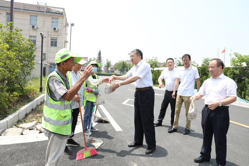 7月13日,集團(tuán)公司黨委委員、工會(huì)主席楊義林到臨海為堅(jiān)守生產(chǎn)一線的職工送清涼,農(nóng)場(chǎng)公司黨委領(lǐng)導(dǎo)班子成員以及片區(qū)財(cái)務(wù)總監(jiān)陪同。楊義林先后來(lái)到河濱公園、健康小屋核酸檢測(cè)點(diǎn)和農(nóng)機(jī)總站,向奮戰(zhàn)在基層一線的環(huán)衛(wèi)職工、疫情防控工作人員和農(nóng)機(jī)駕駛?cè)藛T表示慰問(wèn)并送上了清涼禮包,親切詢問(wèn)他們的工作情況。楊義林對(duì)高溫下堅(jiān)守的職工表示感謝,囑咐大家在高溫工作時(shí)要加強(qiáng)自我保護(hù)和安全防范,做好防暑降溫,科學(xué)安排作息時(shí)間,保障身體健康。同時(shí)要求臨海做好夏季安全生產(chǎn)和防暑降溫工作,科學(xué)安排一線職工夏季工作時(shí)間,既保證高溫期間農(nóng)業(yè)生產(chǎn),又要維護(hù)廣大職工的安全健康權(quán)益,確保高溫時(shí)節(jié)各項(xiàng)工作平穩(wěn)有序開(kāi)展。大家紛紛表示,將一如既往、踏踏實(shí)實(shí)做好本職工作,以實(shí)際行動(dòng)喜迎二十大勝利召開(kāi),為建設(shè)美麗臨海作出更大貢獻(xiàn)。